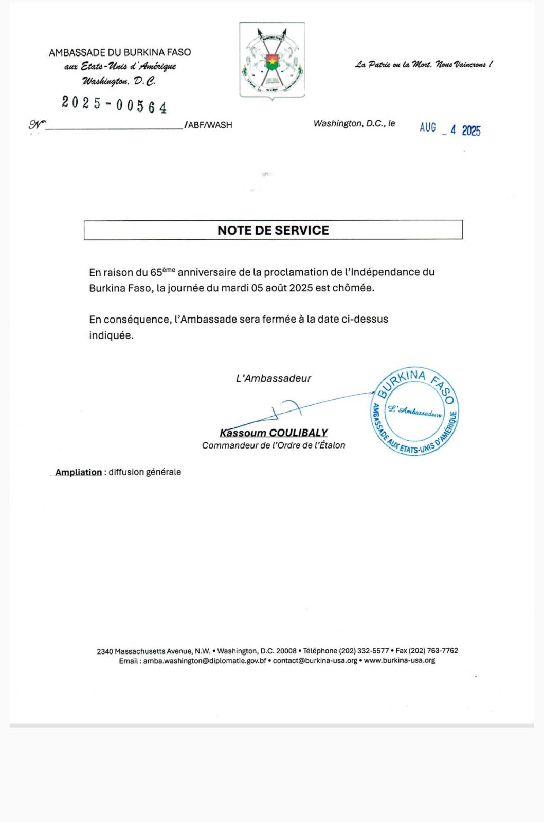 L’Ambassade du Burkina Faso à Washington DC et le Consulat général du Burkina à New…