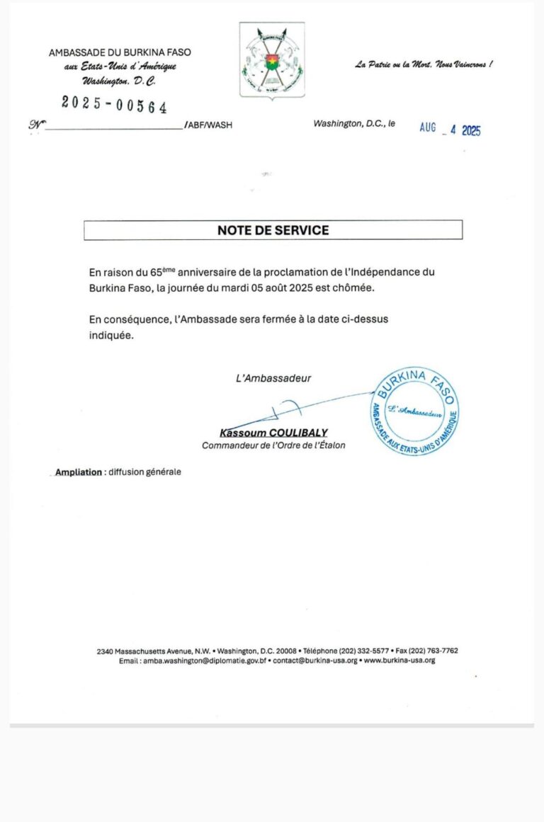 Actualités de la diaspora., Communications, Embassy spotlight, News Journee du 5 août fériée août 4, 2025 by Servace Maryse DABOU