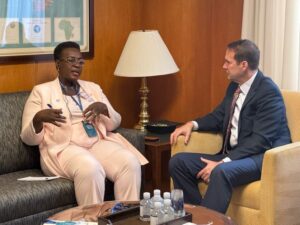 Trophée en main, elle a dit être passée pour présenter non seulement son prix à elle décerné par le Département d’Etat la veille, mais aussi solliciter une fois encore le soutien de la représentation diplomatique dans le plaidoyer pour l’obtention de l’accréditation de la CNDH auprès des Entreprises de Droits de l’Homme.