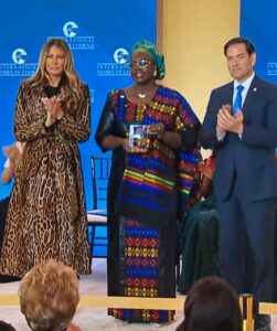Mme DA a reçu son prix au cours d’une cérémonie solennelle à Washington DC des mains de la Première Dame des Etats-Unis, Melania TRUMP, et en présence de Marco Rubio, Secrétaire d’Etat américain. Le Burkina Faso y était représenté par notre compatriote au même titre que 7 autres dames venue d’Israël, de la Papouasie-Nouvelle-Guinée, des Philippines, de la Roumanie, du Sud-Soudan, de Sri Lanka et du Yemen.